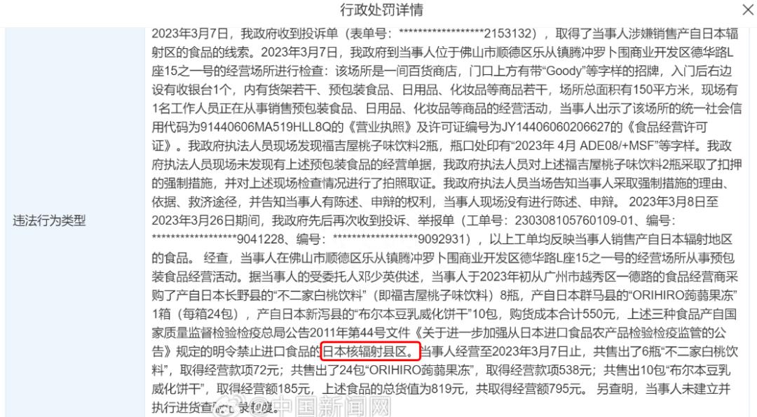 记者查询发现,今年以来,已有多家商家因销售来自核辐射区食品被处罚。